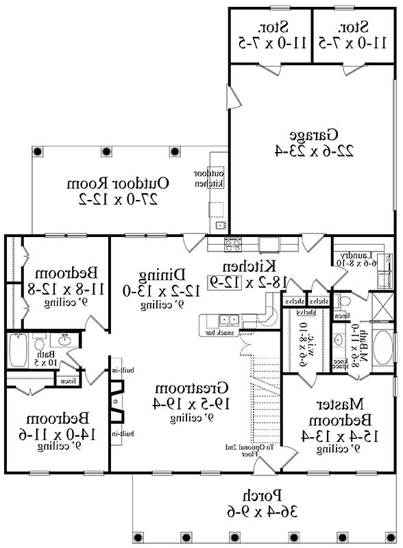 Reverses house plan (Text and Dimensions are readable)