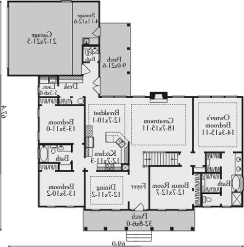 Reverses house plan (Text and Dimensions are readable)